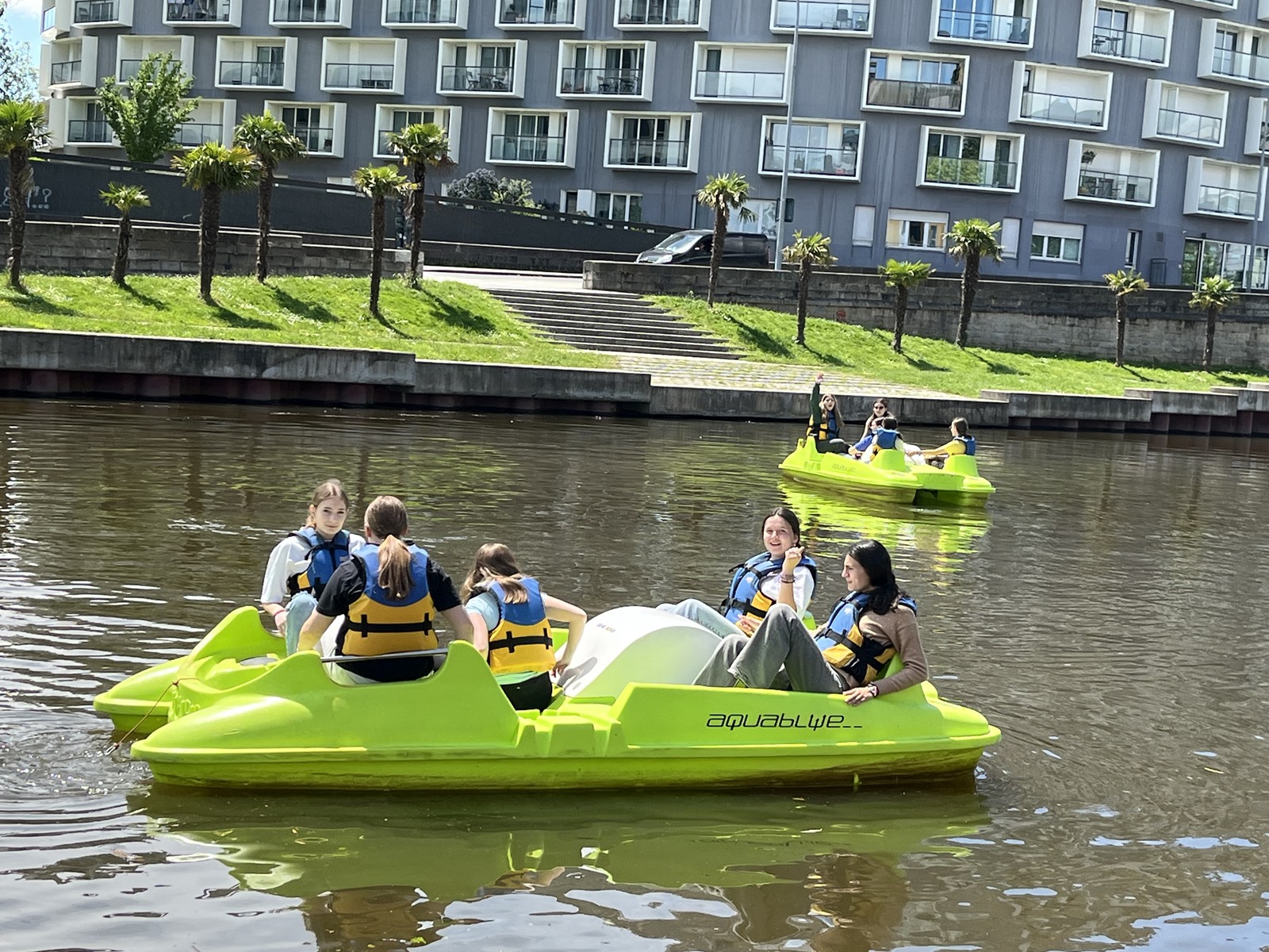 Schulbesichtigung und Teilnahme am Unterricht der Austauschpartner, gemeinsames Mittagessen in der Mensa, Erkundung von Rennes entlang der Vilaine, Tretboot- und Kanufahren auf der Vilaine, Vorbereitung des Bunten Abends in der Schule, Bunter Abend zusammen mit den Gastfamilien, Darbietungen und Genießen eines köstlichen Buffets