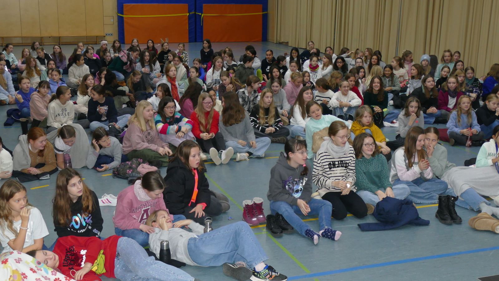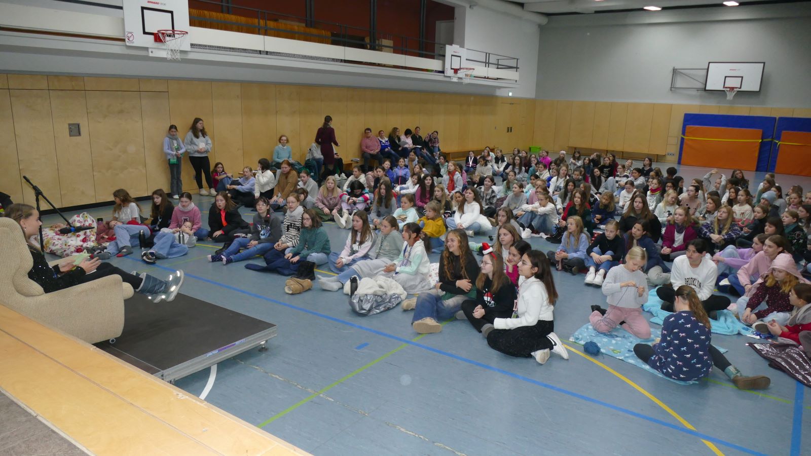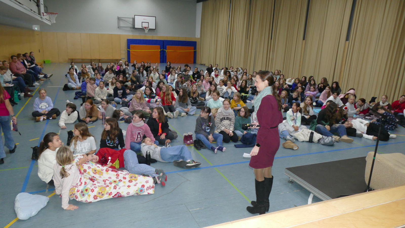Mit Spannung wurde das Vorlesefinale der Marienschule erwartet. Am 06.12.2024 begrüßte Frau Luß alle Schülerinnen der Unterstufe in der Aula und leitete den Wettbewerb der Klassensiegerinnen aus der Jahrgangsstufe 6.