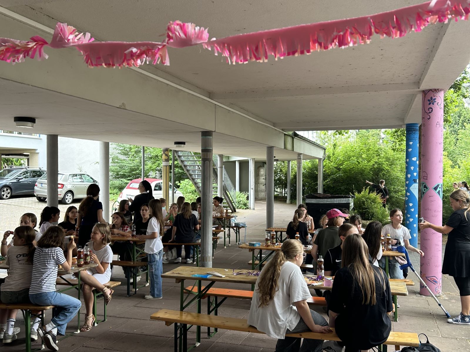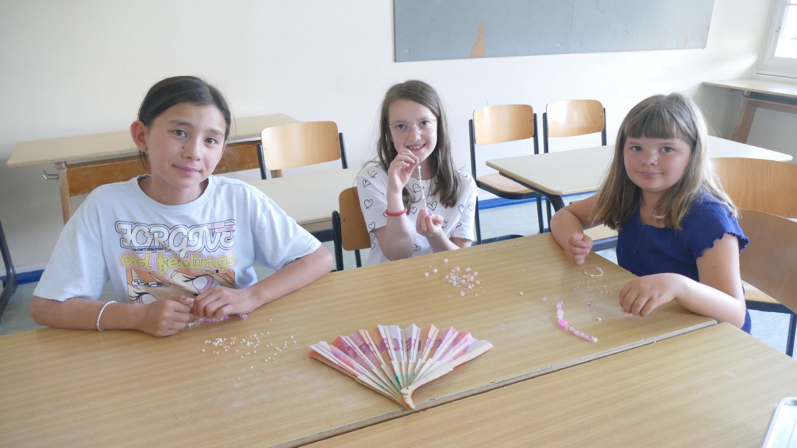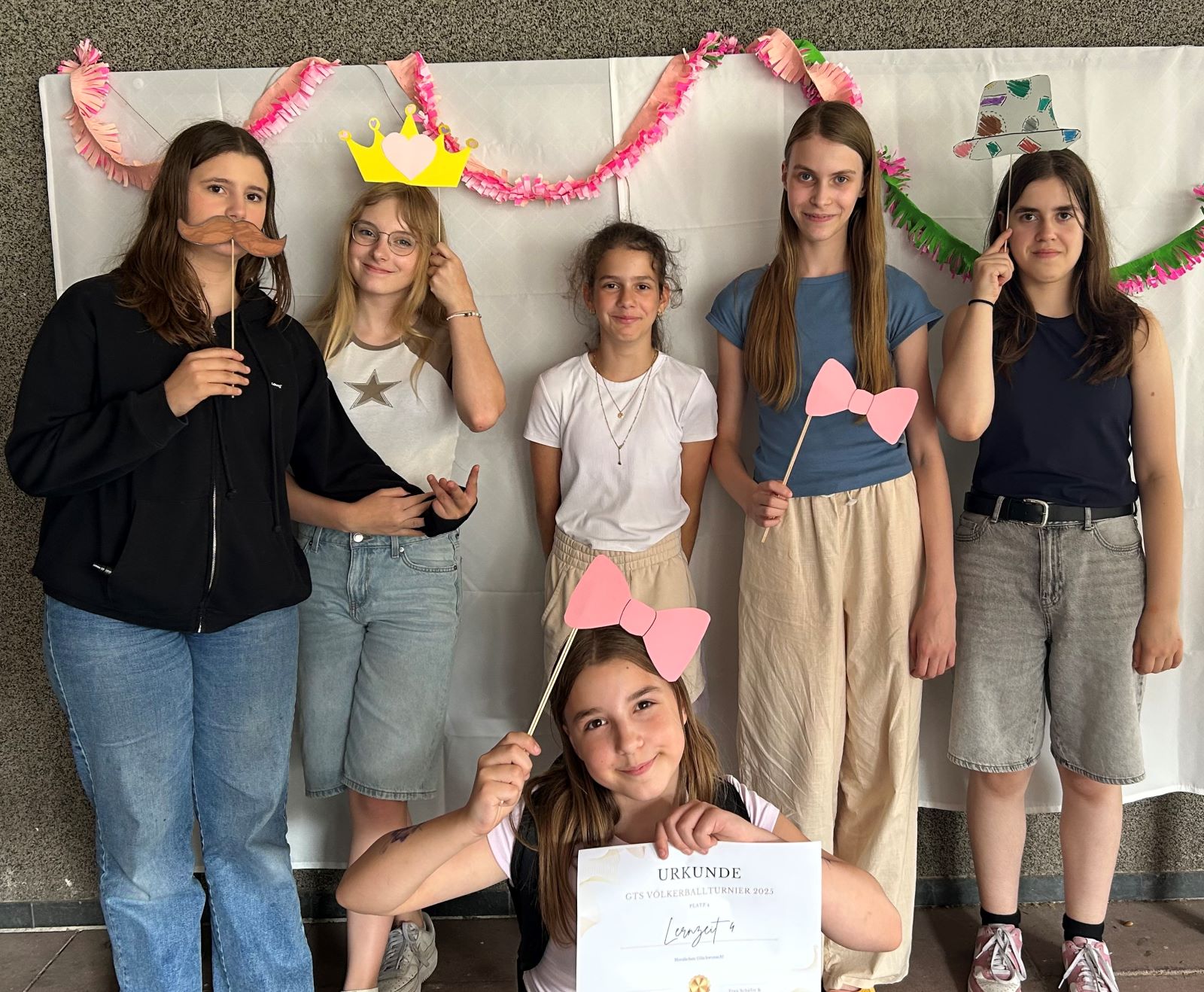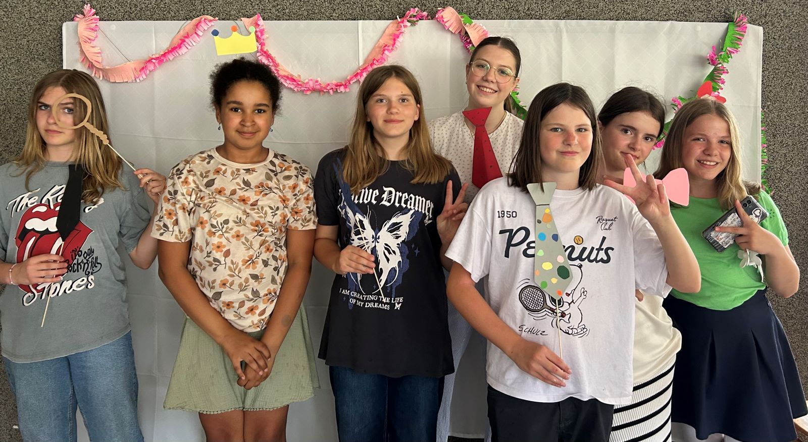 In den AGs wurde fleißig gebastelt – von bunter Dekoration bis hin zu liebevoll geknüpften Freundschaftsarmbändern war alles dabei. Den krönenden Abschluss dieser action- und spaßgeladenen Woche bildete unser Sommerfest. Dort konnten wir nicht nur die kreativ gestalteten Girlanden bewundern und den Sieger des Völkerballturniers ehren, sondern auch mit Masken und Accessoires an der Fotowand tolle Erinnerungen schaffen. Selbst zwischenzeitliche Regenschauer konnten unsere Feierlaune nicht trüben – im Gegenteil: Die Runde wurde sogar durch einige Eltern und Verwandte noch bereichert.