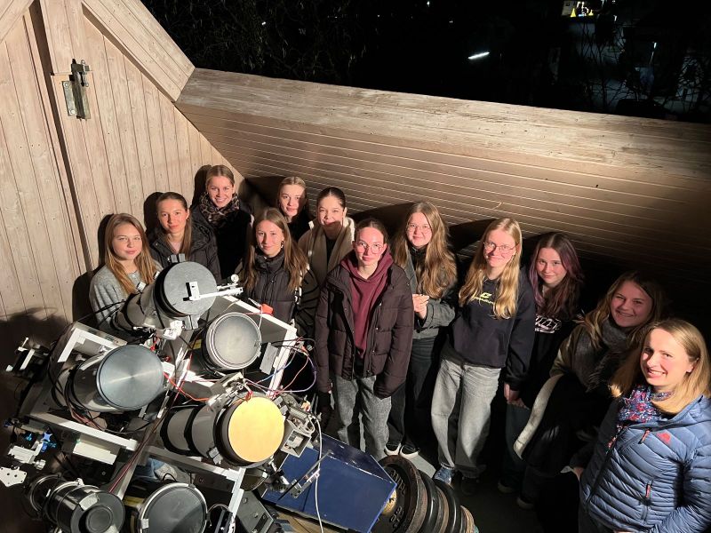 Am 11.12.2025 besuchte unser Physik-Grundkurs der zwölften Jahrgangsstufe die Sternwarte in Sessenbach bei Herrn Klaus Völkel. Schon nach wenigen Minuten merkten wir, mit wie viel Hingabe, Leidenschaft und liebevoller Geduld er seine Arbeit ausübt. Seine Art, uns die Sterne, Planeten und faszinierenden Phänomene des Universums näherzubringen, hat uns alle tief beeindruckt.