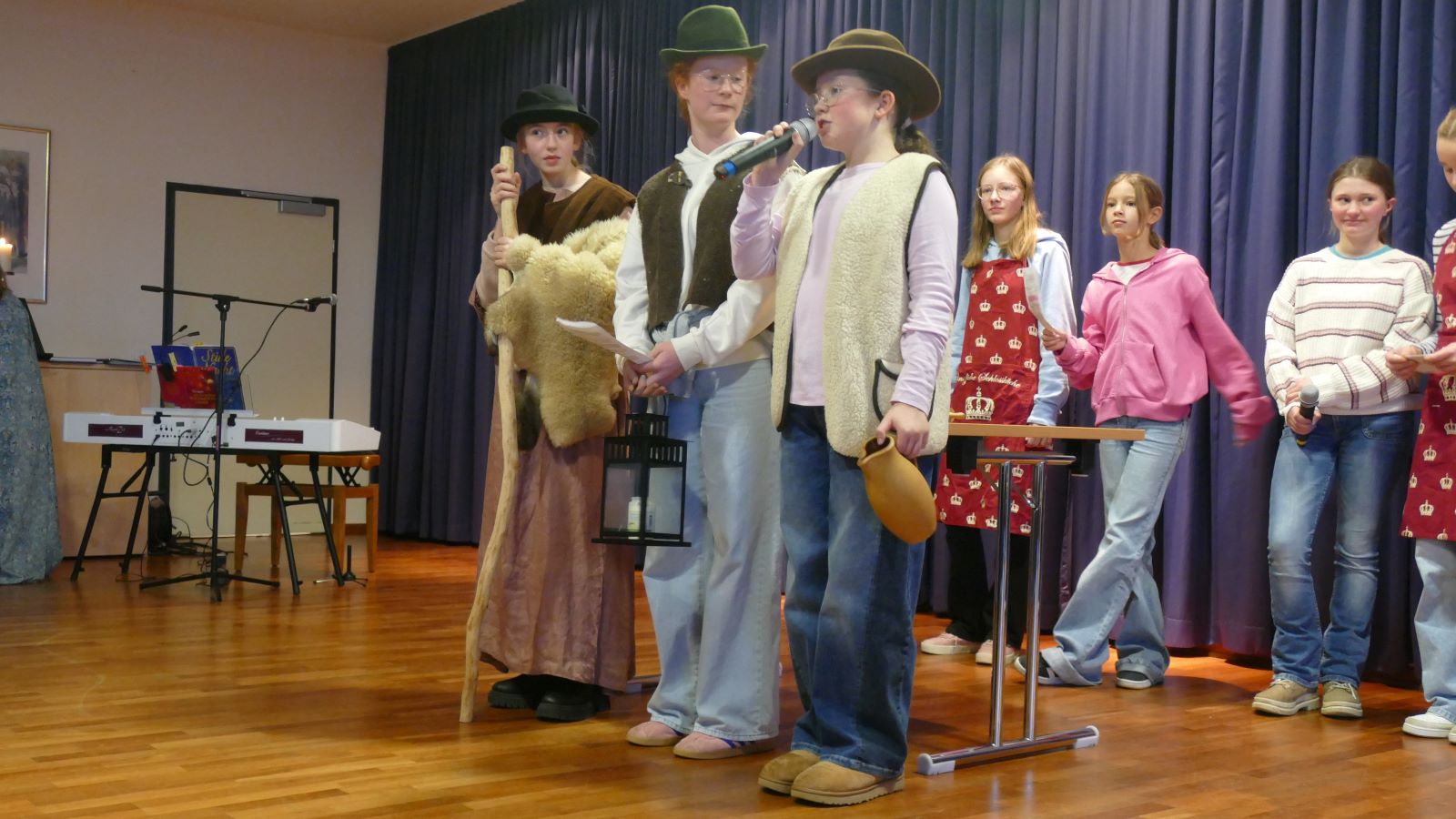 Schülerin 7, 8 und 9 als Hirten verkleidet