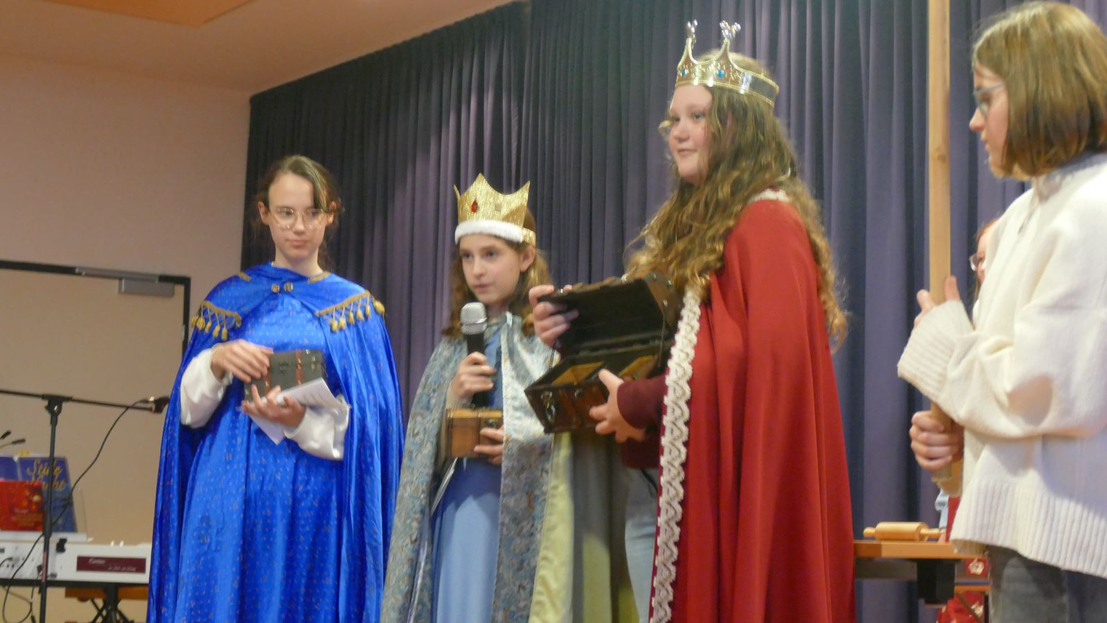 Auch im neuen Jahr werden Schülerinnen mit Darbietungen auftreten. Die heiligen drei Könige werden dann einen längeren Part haben.
