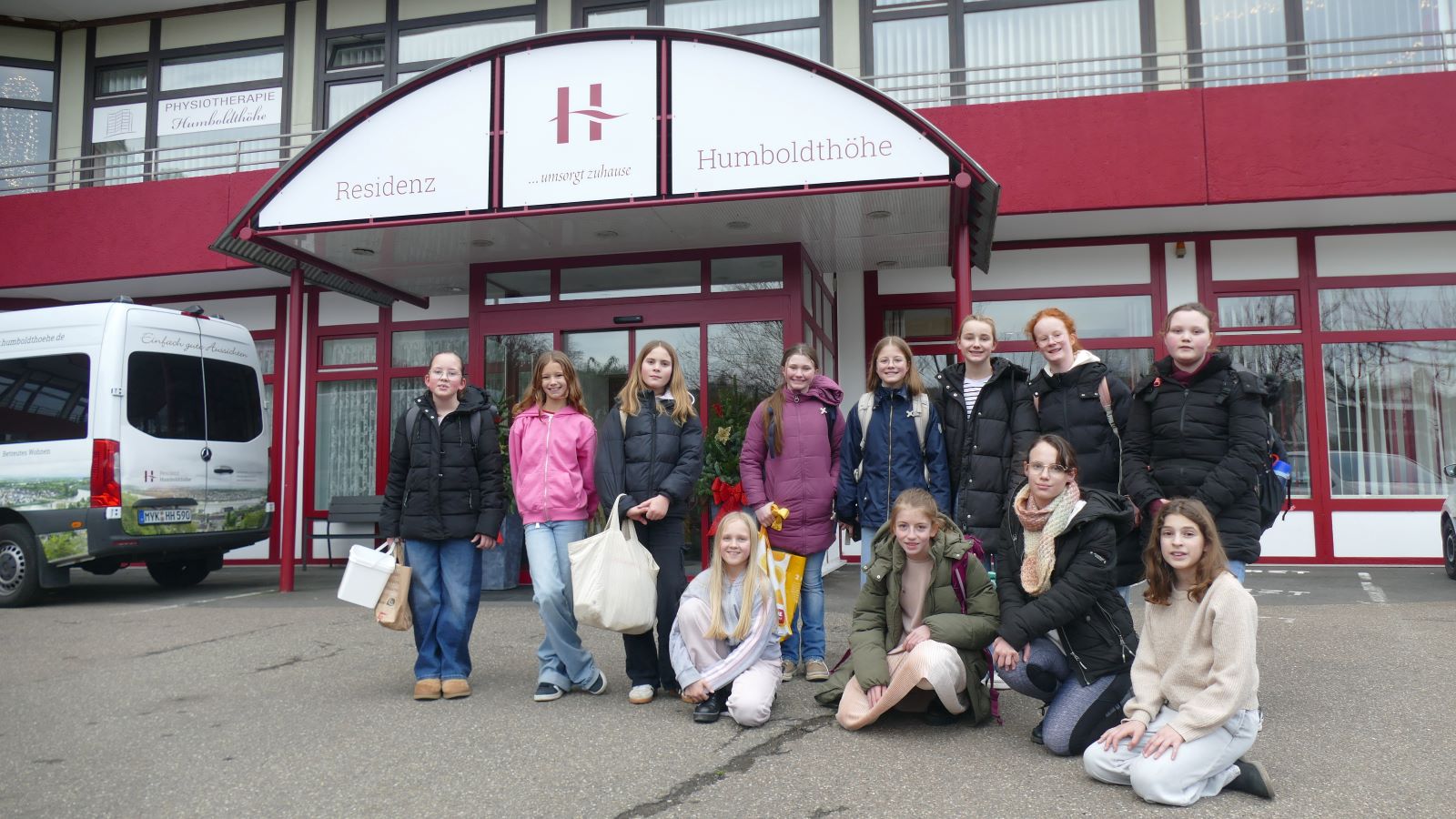 Seit einigen Jahren bringen Schülerinnen aus der Unterstufe der Marienschule einen Beitrag bei der Weihnachtsfeier in der Seniorenresidenz Humboldthöhe. Auch in diesem Jahr wurden wie wieder angefragt. Ene Gruppe von 16 Schülerinnen aus der Klasse 6d studierte ein kleines Theaterstück ein und trat bei der Feier am 17.12.2025 im großen Saal der Humboldthöhe auf.