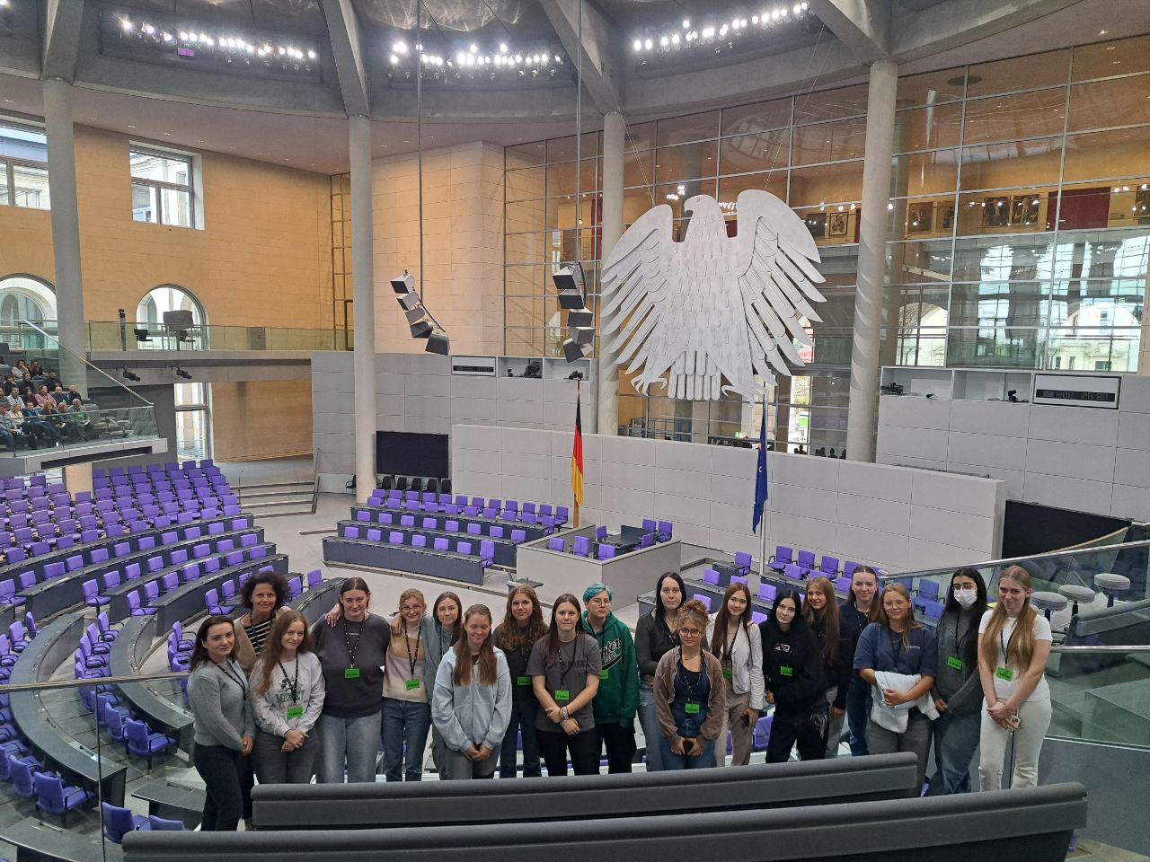 Ein echtes Highlight war der Besuch im Deutschen Bundestag. Dort durften wir nicht nur die Glaskuppel besichtigen, sondern auch mit dem Bundestagsabgeordneten Josef Oster sprechen. Er hat uns viel über seine Arbeit erzählt und unsere Fragen beantwortet. Danach gab es ein Mittagessen im Bundestag, und sogar aus dem Speisesaal hatte man eine richtig schöne Aussicht über das Regierungsviertel.