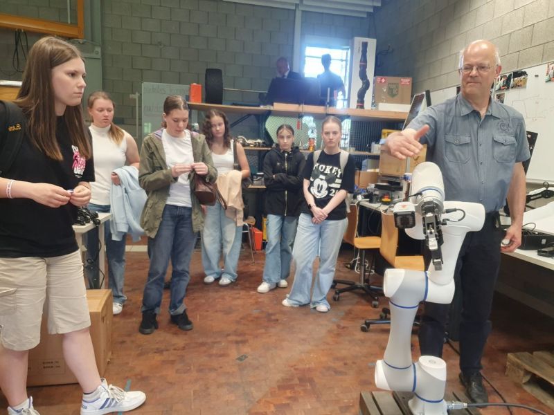 Im Anschluss bekamen die Schülerinnen einen nagelneuen Roboter in Aktion zu sehen, der über eine Million Euro gekostet hat und der Hochschule sowohl im Bereich Maschinenbau als auch im neuen Studiengang "Robotik und KI" als "Flaggschiff" zur Verfügung steht. Auch Fragen rings um das Studium an der Hochschule und das vielfältige Angebot dort wurden geklärt. Erstaunt waren die Schülerinnen, wie leicht der Wechsel von der Realschule über die Fachoberschule zur Hochschule sein kann.