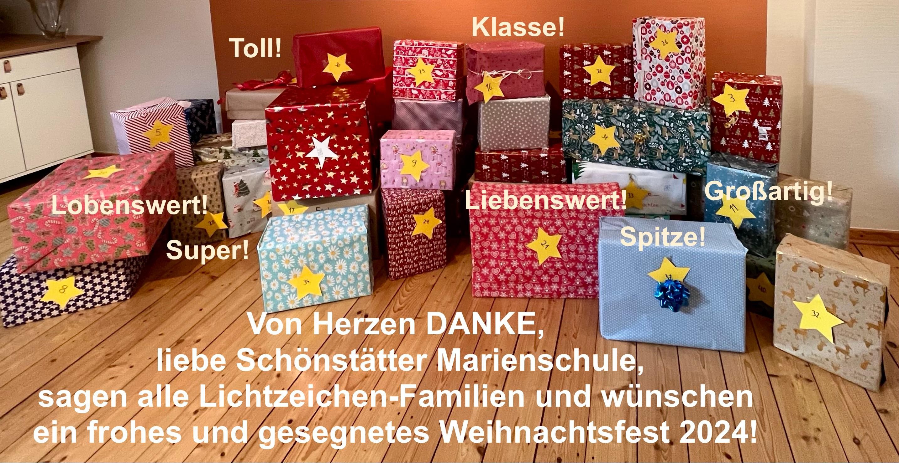 Auch in diesem Jahr hat sich jede Klasse wieder sehr viel Mühe bei dem Verpacken ihrer Weihnachtspäckchen gegeben. Insgesamt 40 Päckchen konnten dann am letzten Schultag während des Gottesdienstes an zwei Vertreter der Organisation Lichtzeichen übergeben werde.