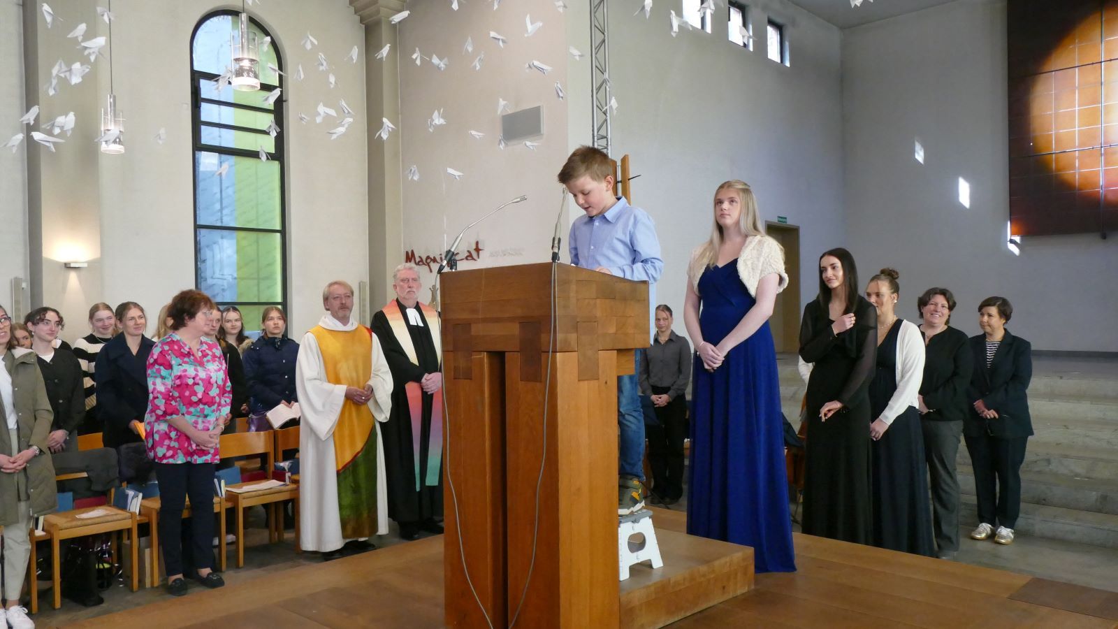 In dem Gottesdienst wurde auch den Familien und Freunden der Abiturientinnen Dankbarkeit entgegengebracht. Die Mutter einer Abiturientin sowie ein jüngerer Bruder waren mit in der Reihe derer, die eine Fürbitte vortrugen.