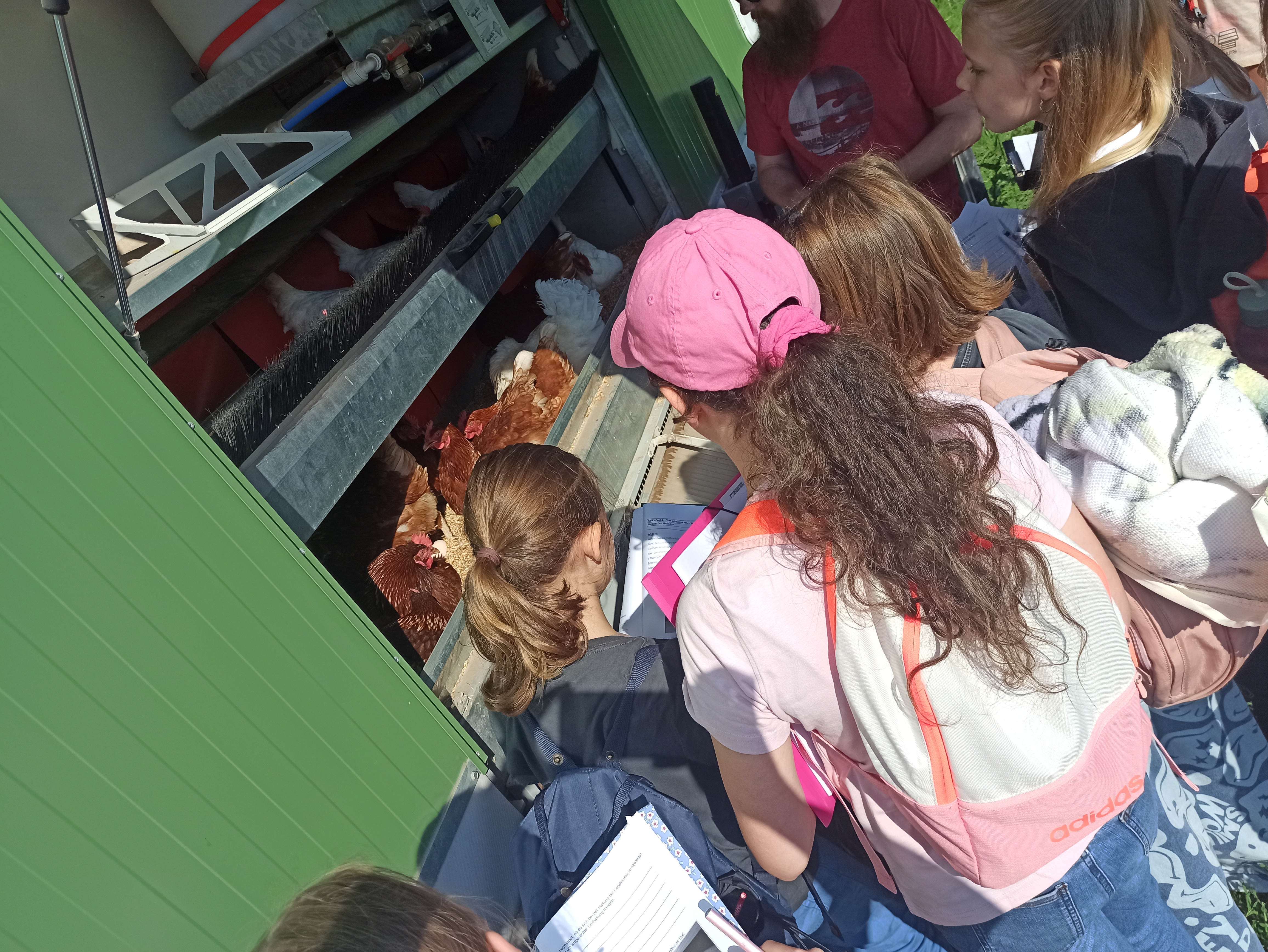 Beim Besuch eines Bioland-Hofs in Maria Lach erarbeiten sich die Schülerinnen die Grundlagen des ökologischen Landbaus und der artgerechten Tierhaltung und erleben mit großer Begeisterung hautnah Schweine, Kühe und Hühner. Jedes Mal sind sie fasziniert, wenn sie ein Huhn auf den Arm nehmen und streicheln oder die Schweine selbst füttern dürfen.